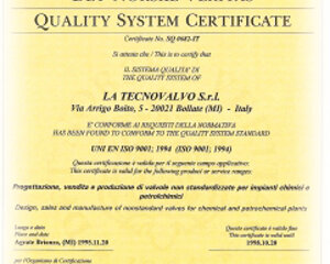 1994 : Certificazione qualità UNI EN ISO 9001.